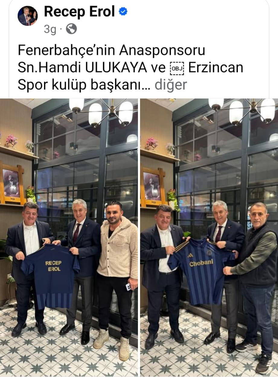 Erol’un ziyaret trafiği sadece sokakla sınırlı kalmadı. Fenerbahçe’nin ana sponsoru iş insanı Hamdi Ulukaya ve Erzincanspor Kulüp Başkanı Alaattin Yavuz Güneş ile bir araya gelen Recep Erol, kendisine takdim edilen forma hediyesi için teşekkür ederek, Türk sporu adına başarı dileklerinde bulundu.